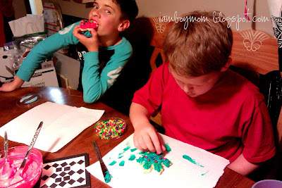 What is it with boys and scary things? He wanted to make a "Scary Santa." I have to say...it was pretty scary!